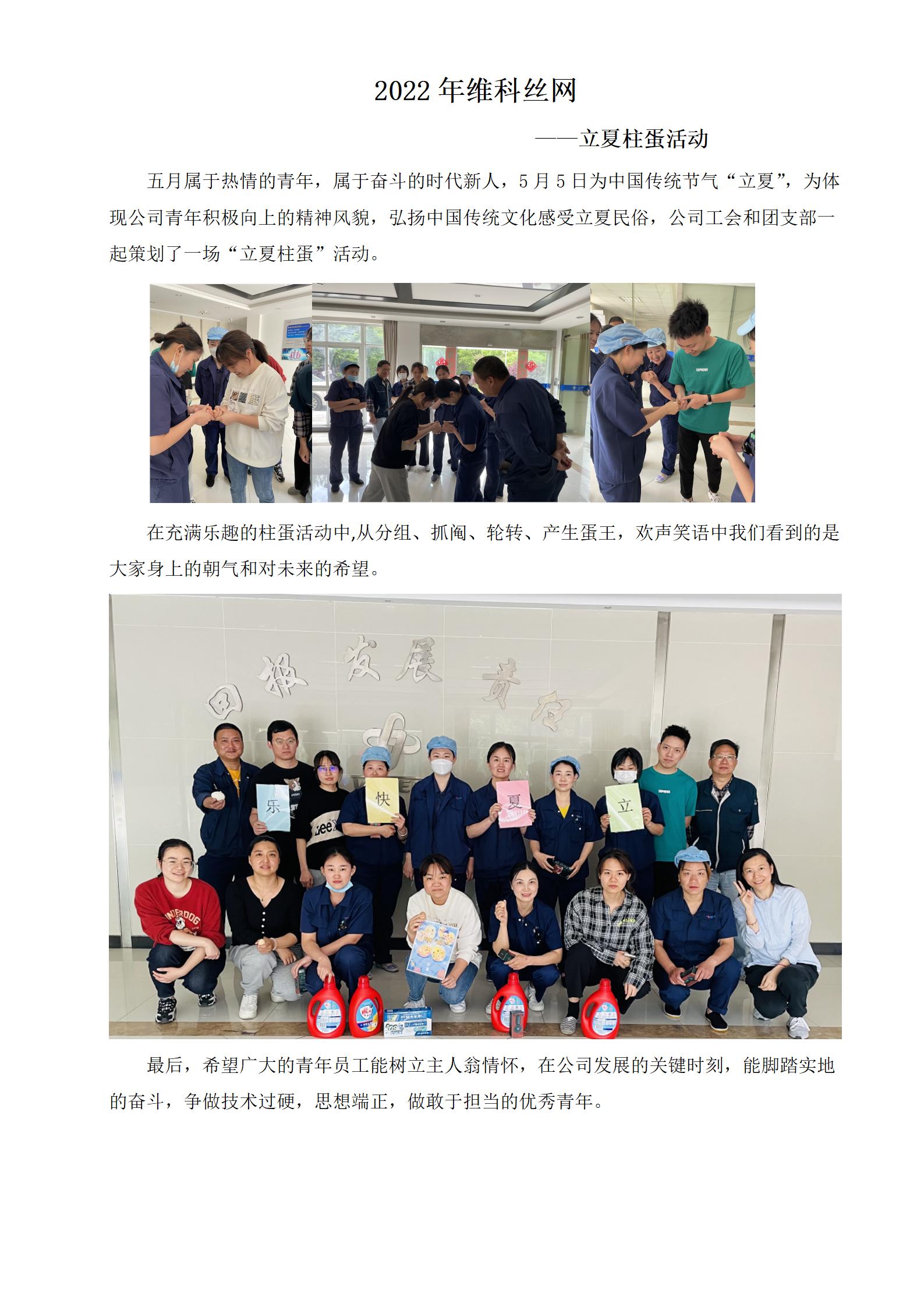 【概要描述】五月屬于熱情的青年,屬于奮斗的時代新人,5月5日為中國傳統(tǒng)節(jié)氣“立夏”,為體現(xiàn)公司青年積極向上的精神風(fēng)貌,弘揚(yáng)中國傳統(tǒng)文化感受立夏民俗,公司工會和團(tuán)支部一起策劃了一場“立夏柱蛋”活動。
